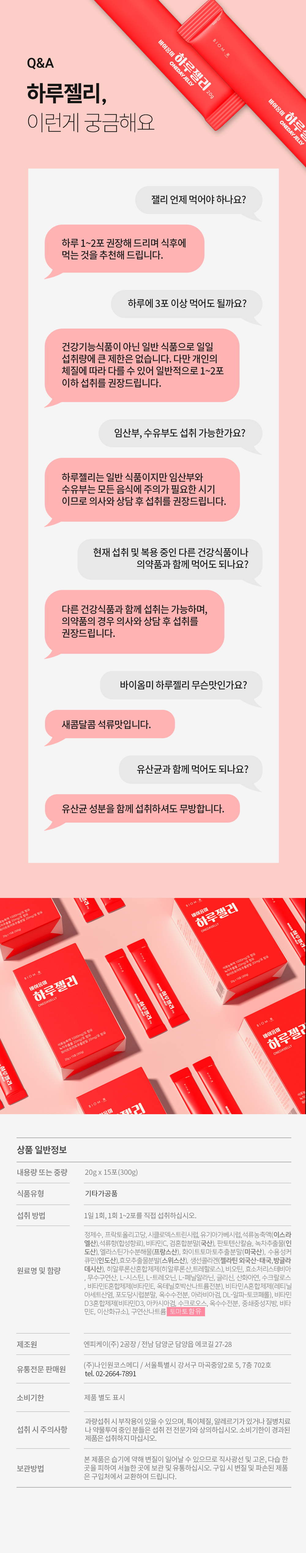 바이옴미 하루젤리 20g x 15포 (300g)