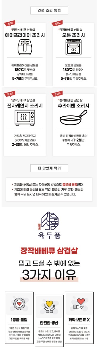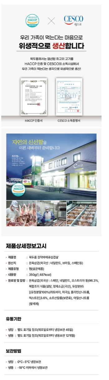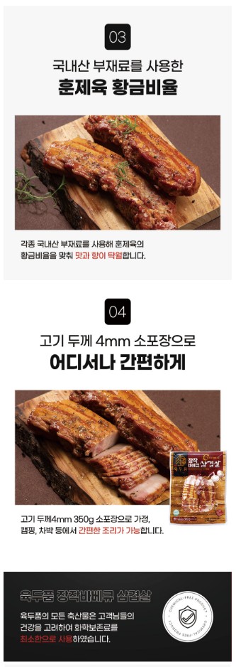 [장작바베큐] 삼겹살 350g - 2봉 참나무장작으로 훈연하여 기름기 없고 담백합니다.