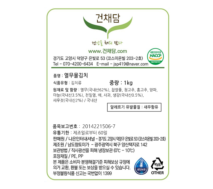 건채담 열무물김치 1kg / 3kg